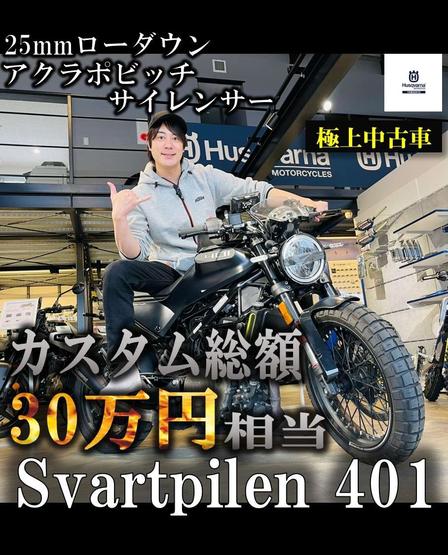 【🌟本日のYouTube投稿完了🌟】 【カスタム総額30万円相当!】 超人気モデルの『Svartpilen 401』2023年モデルの 中古車が入荷!!KTM山形